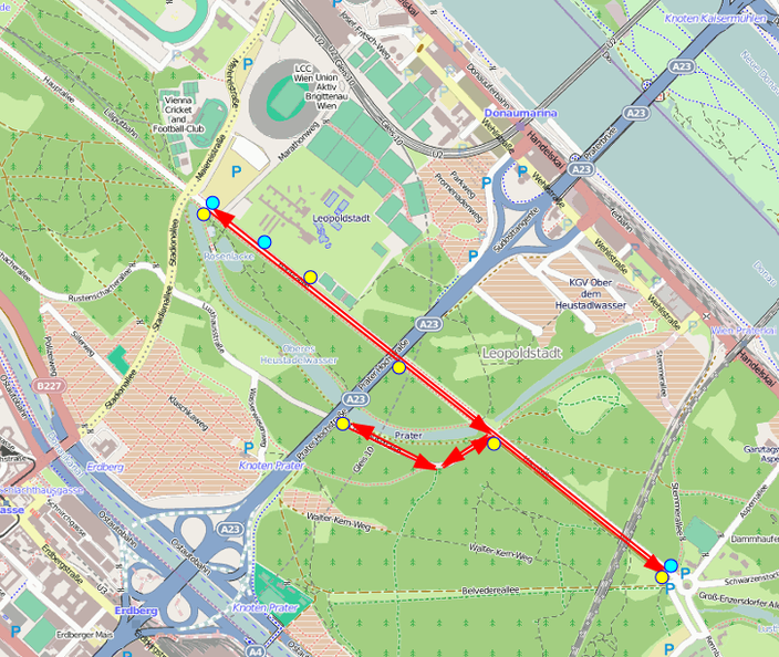Start/Ziel: Prater Hauptallee / ecke Meiereistraße, ca 100m unmittelbar nach der Kreuzung